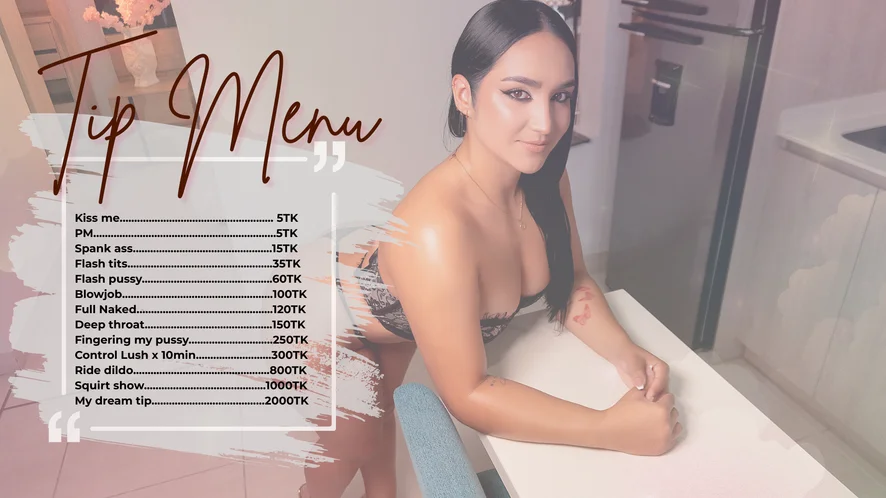 Догі-стайл, Ахеґао, Спанкінг, Еротичні танці, Верблюжа лапка, Мастурбація пальцями, Дилдо або вібратор, Глибоке горло, Тверкінг, Брудні розмови, Стриптиз, Фут-фетиш, Рольові ігри, Секс-іграшки, Мінет, Мастурбація, Між грудьми, Сквірт, Олійне шоу, Жорсткий секс, Підбори, Топлес, Поза вершниці
